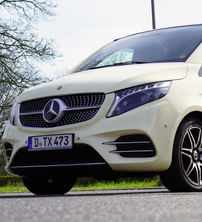 Zusätzlich bietet die exklusive Sonderausstattung unserer V-Klasse ausklappbare Laptoptische, die es ermöglichen, unterwegs zu produktiv zu sein, sowie Bord-WLAN für Konnektivität während der Fahrt. Mit der Kapazität für bis zu 6 Personen bietet sie zudem großzügigen Platz für Passagiere und Gepäck, ohne Kompromisse bei Komfort und Stil einzugehen.